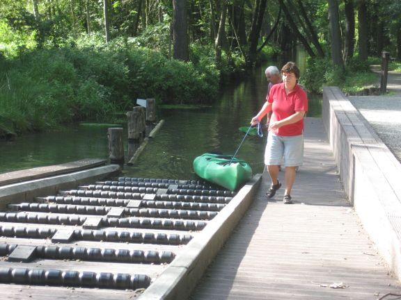 einigen Schleusen sein Boot über Rollen ziehen.