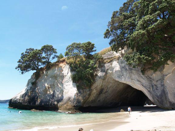 Coromandel Peninsula - Cathedral CoveBlick auf die Cathedral Cove von der anderen Seite. Da der Weg dorthin etwas beschwerlich ist, halten sich die Menschenmassen hier zum Glück in Grenzen. |