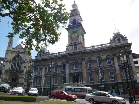 DunedinUnsere Fahrt ging weiter durch hügelige Graslandschaften mit unmengen an Schafen, in die sehr schöne schottisch geprägte Stadt Dunedin. Hier ist das Rathaus von Dunedin zu sehen. |